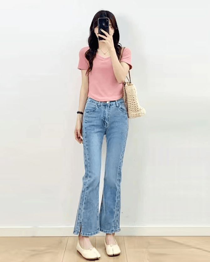 黑白色系的穿搭總能夠給人一種高冷又高級的感覺,黑色的闊腿喇叭褲是非常顯瘦的,而且這條褲子的版型本身就是比較寬鬆的類型,所以也適合更多的微胖女生放心大膽的選擇。