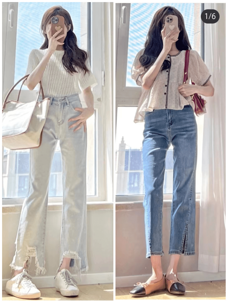 前面給大家介紹的很多都是比較短款的毛背心,但是這款長款的橫條紋毛背心也是很好看的。內搭白色的襯衫,簡約柔軟,這樣的話,褲子就可以搭配比較修身的,或者是光腿神器,都是很好的選擇,風格也十分甜美。